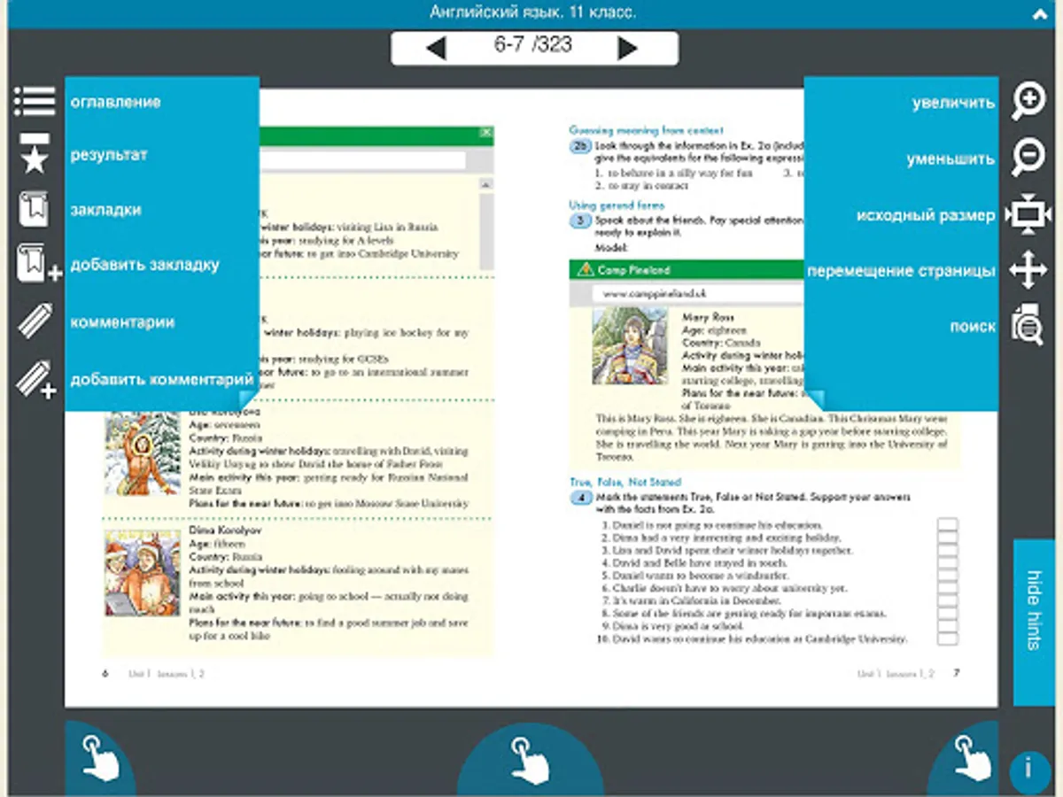 Electronic form of the textbook “English. Grade 11: the basic level of the “Happy English.ru” / Happy English.ru series (authors K.I. Kaufman, M.Yu. Kaufman) fully correspond to the paper textbook, does not require an Internet connection after downloading, contains embedded multimedia materials and interactive exercises.
