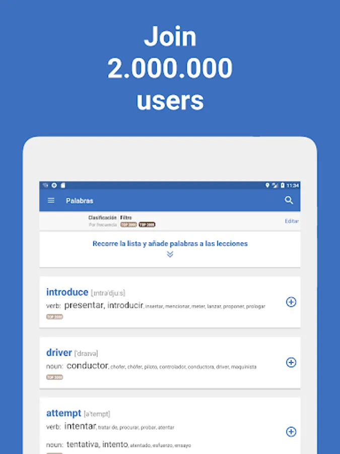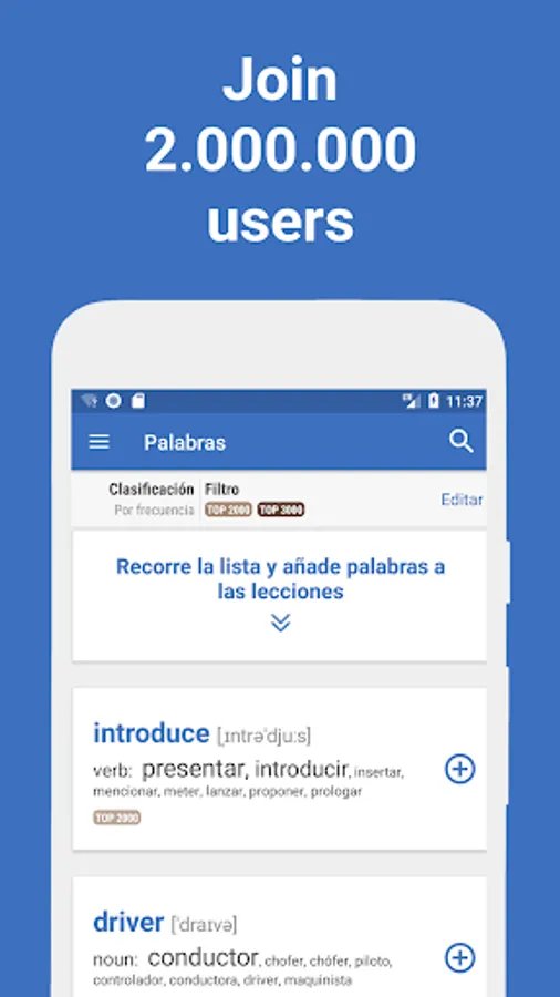 Spending a lot of time in transport on the way to work or study, or are you standing in a long queue for a doctor or a multi-kilometre traffic jam? Use this time to benefit! Start learning new words with Words. Just 20 minutes a day and within a month your vocabulary will become much better, you will have much more confidence to understand and speak a foreign language.
