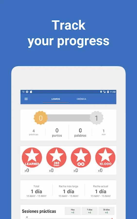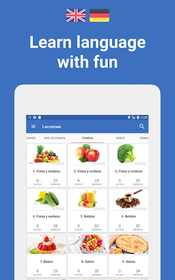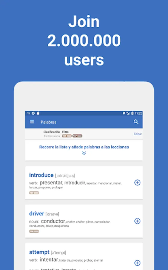 Our unique algorithm improves the learning process, using proven methods from the field of memory research. Words adapts individually to you, selectively repeats the words with which you had problems. Completing lessons and playing games, you will gain experience, move to higher levels and collect rewards.