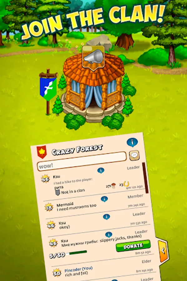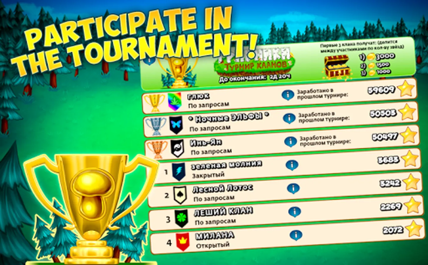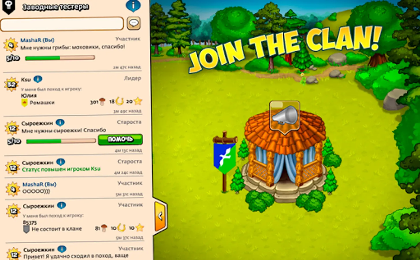 – Join a clan or create your own, communicate in a chat and help each other mushrooms, participate in a tournament and receive a gold award