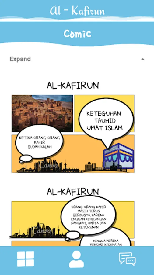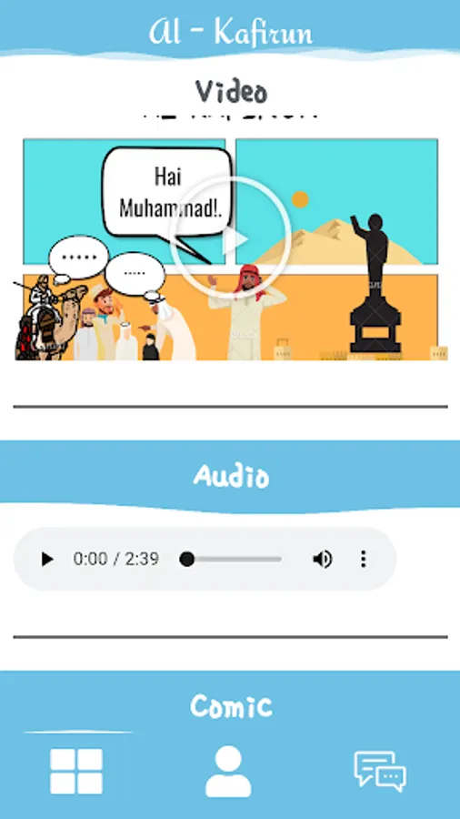 The application contains Asbabun Nuzul Surahs in the Qur'an in which there is a short story about the story of the letter being revealed. There are 3 Types of Submission, namely Video, Audio and Comic.