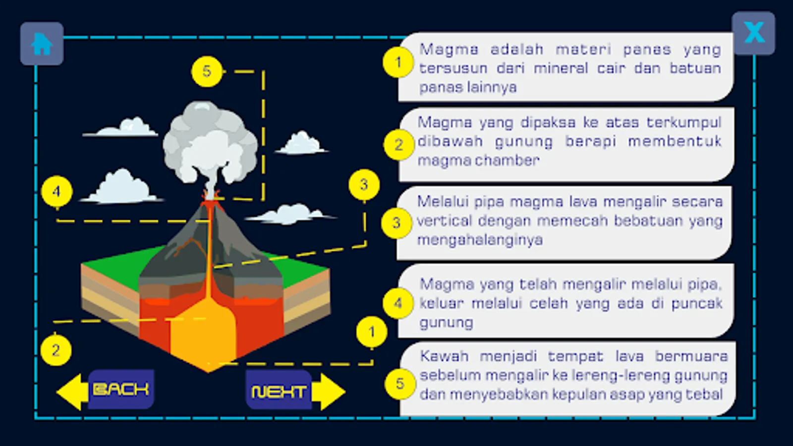 Earth Layer Learning Media contains science material that is focused on junior high school level and adapted to the 2013 curriculum. This application contains material that is packaged in an attractive manner, with animated displays and supporting videos to increase user insight. This application is also equipped with an evaluation to measure the level of cognitive understanding of the user.