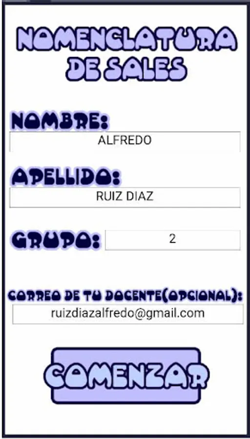 Evaluation of your results, on a scale of 1 to 12, with the possibility of sending it to your chemistry teacher.