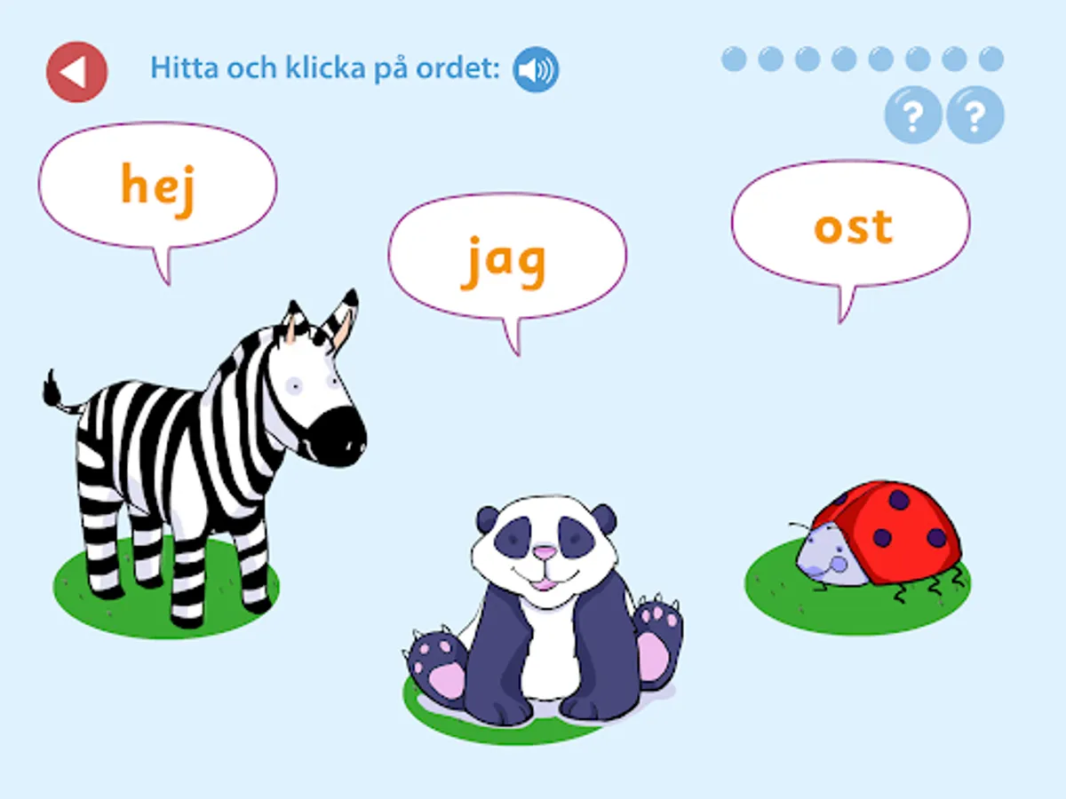Hitta ordet. Här tränas ordbilder (automatisering av småord som och, hej, den, det, kan, inte).