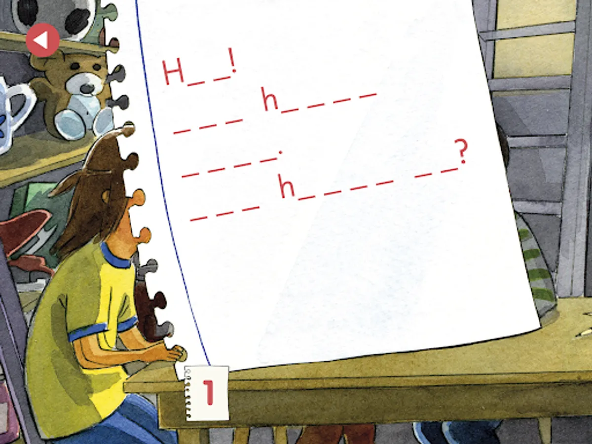 Skriv. Här tränas koppling ljud och bokstav samt syntes (att kunna sätta ihop bokstäver till ord).