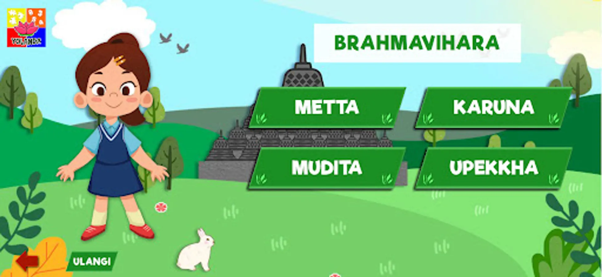 The YOLANDA application comes as an audio-visual based Buddhist learning application designed to introduce the Pali language, teach Brahmavihara values, and teach Buddhist symbols in a fun way, namely learning while playing.