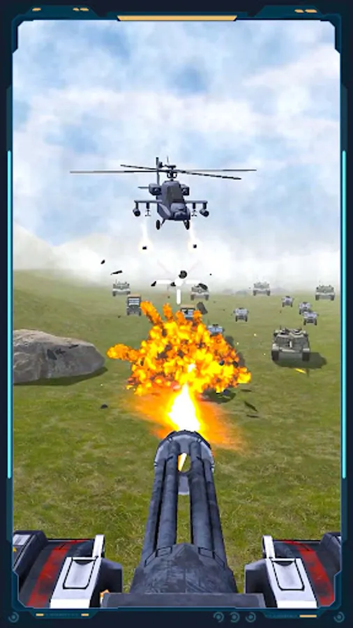 2. Switch between different weapons to destroy enemy troops and vehicles.