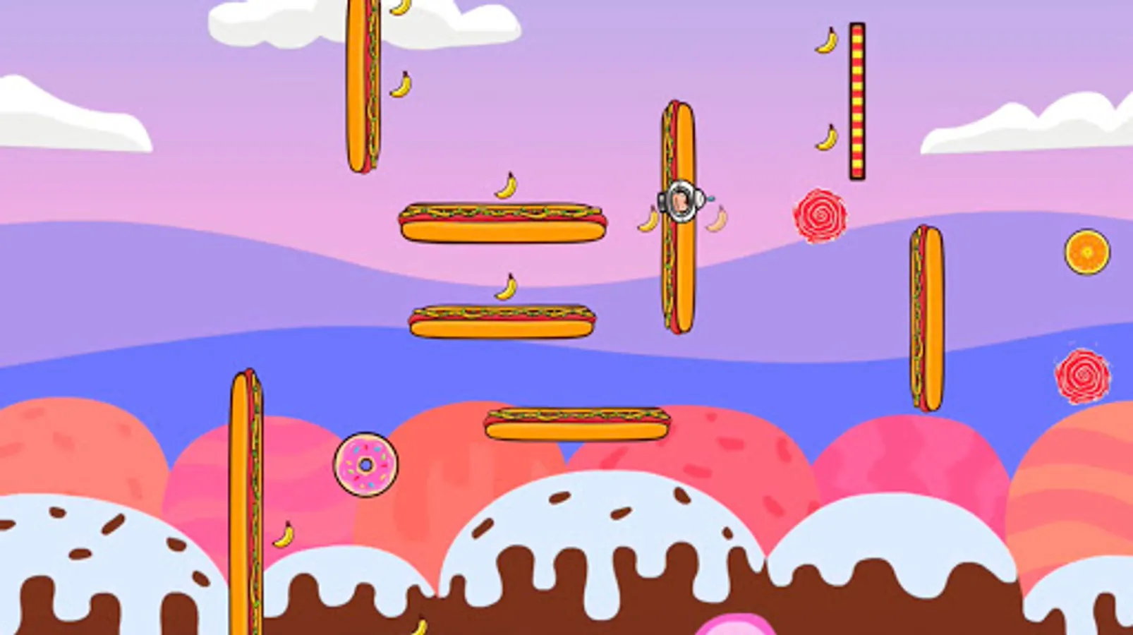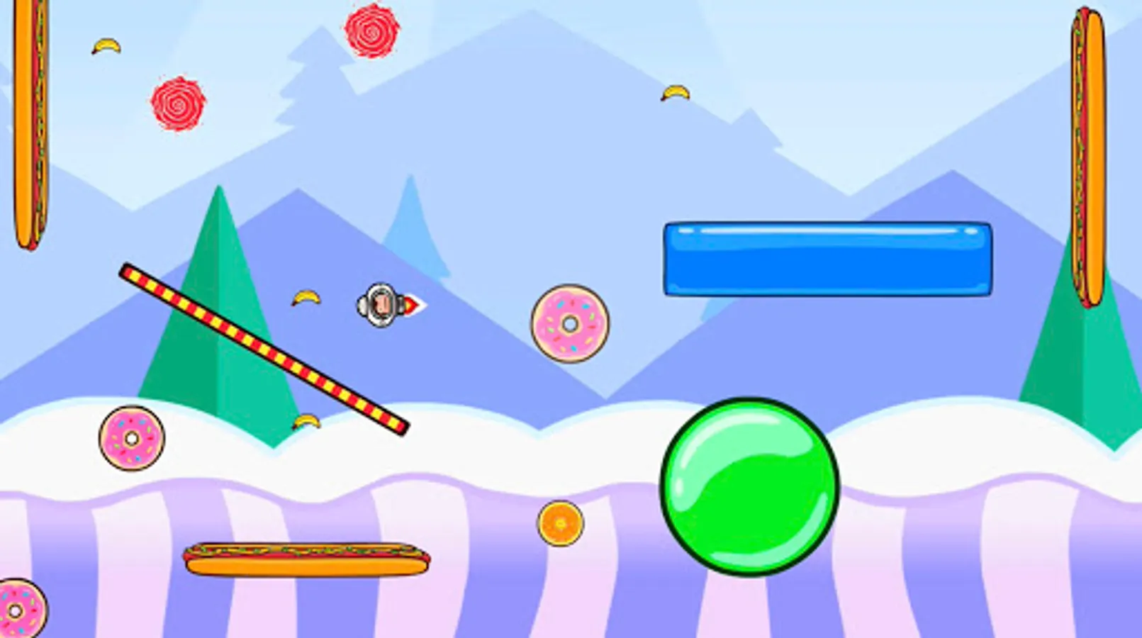 • Use point-to-point trajectory to maneuver through obstacles including space portals, spinning donuts, conveyor hotdogs, and more
