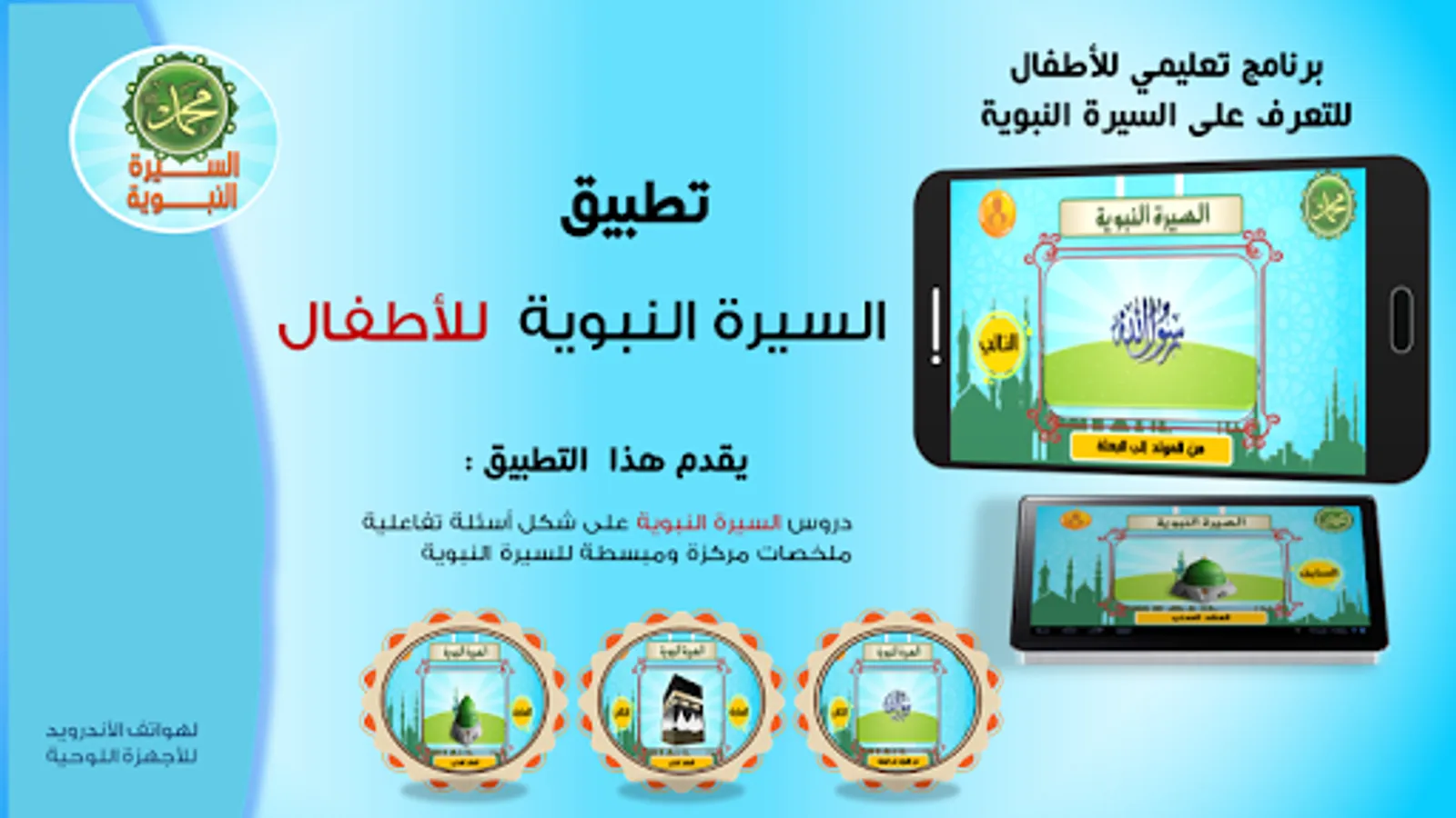 This application is designed in an attractive manner in terms of colors and presentation, fonts and sound, and was adopted a simple and central language dictionary, providing the child with detailed and summarized information enrich his knowledge about the biography of the Prophet peace be upon him.