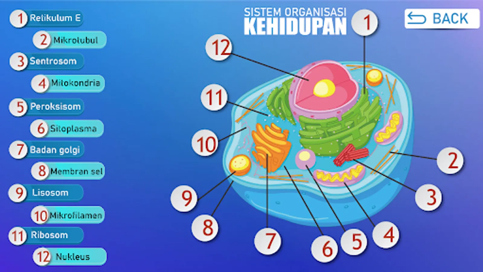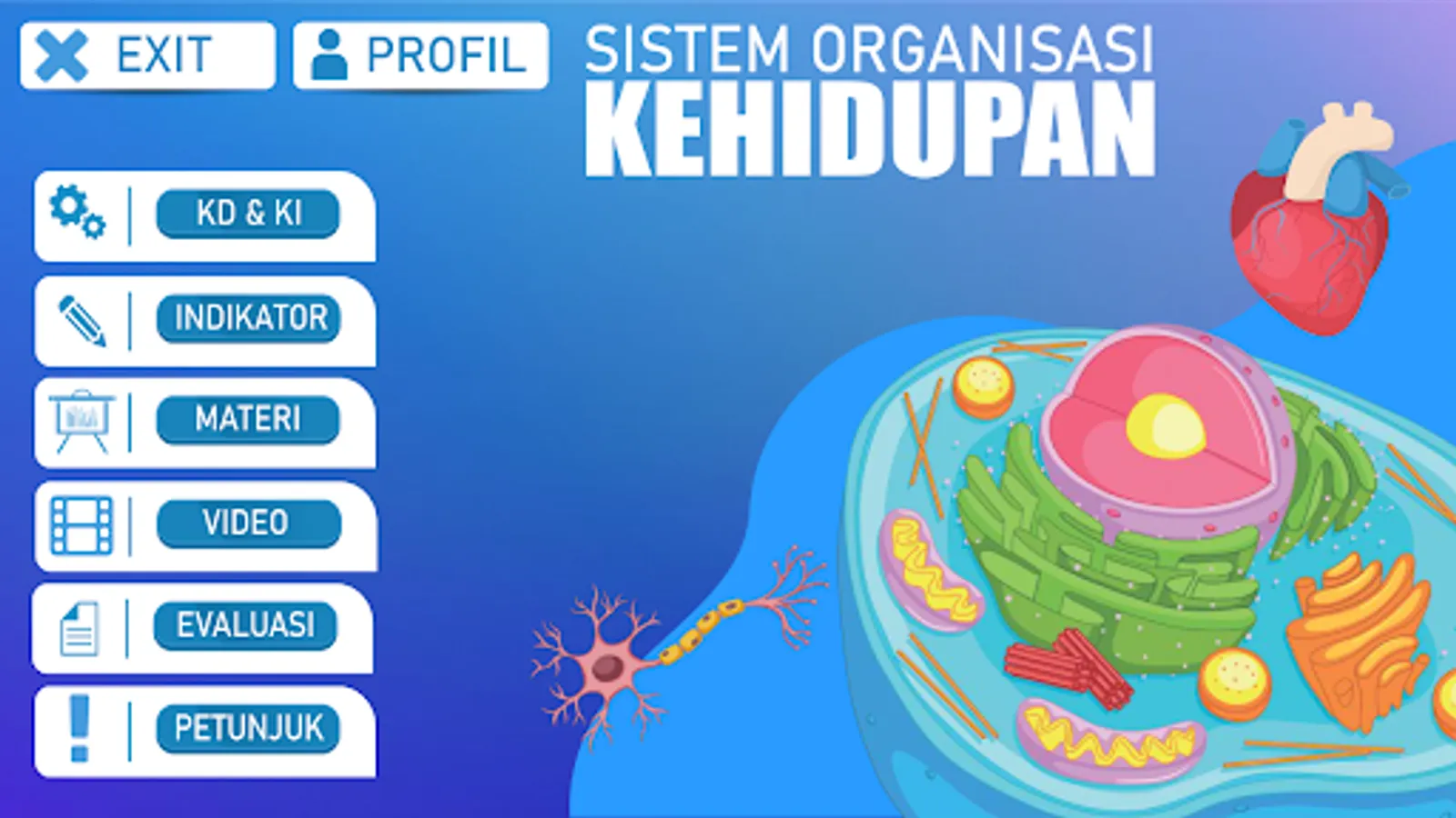 The learning media for the Life Organization System is an application that contains scientific material in the scope of the life organization system starting from cells, tissues, organs, organ systems and organisms. The application is equipped with attractive images and animations, animated videos, and also evaluations to measure the reader's level of understanding.