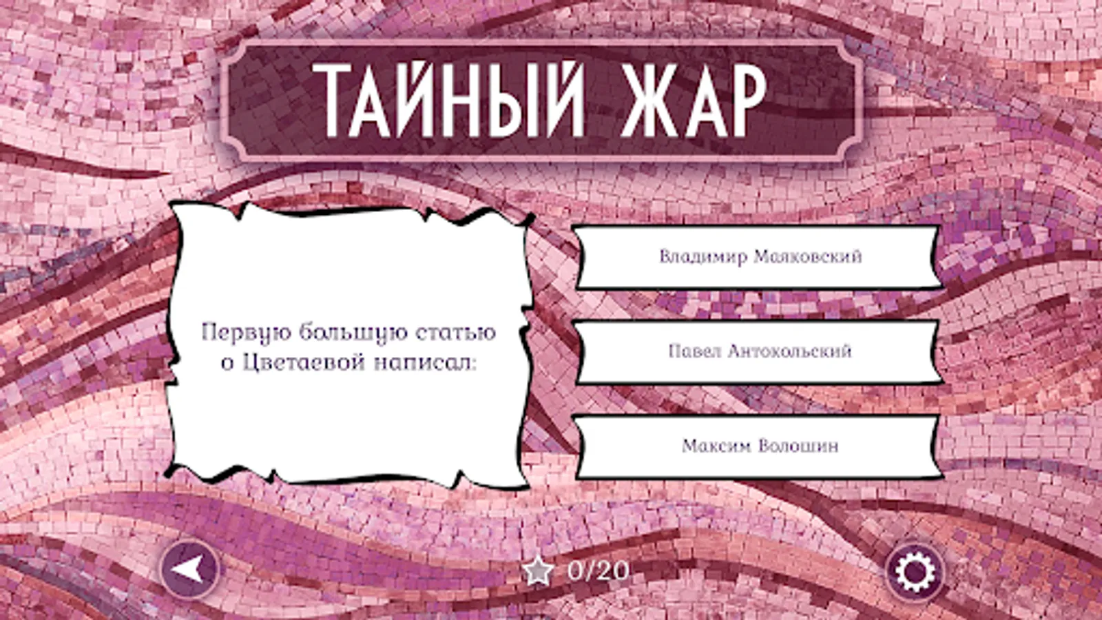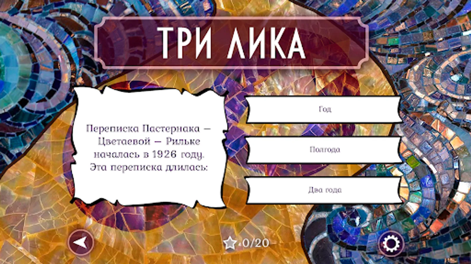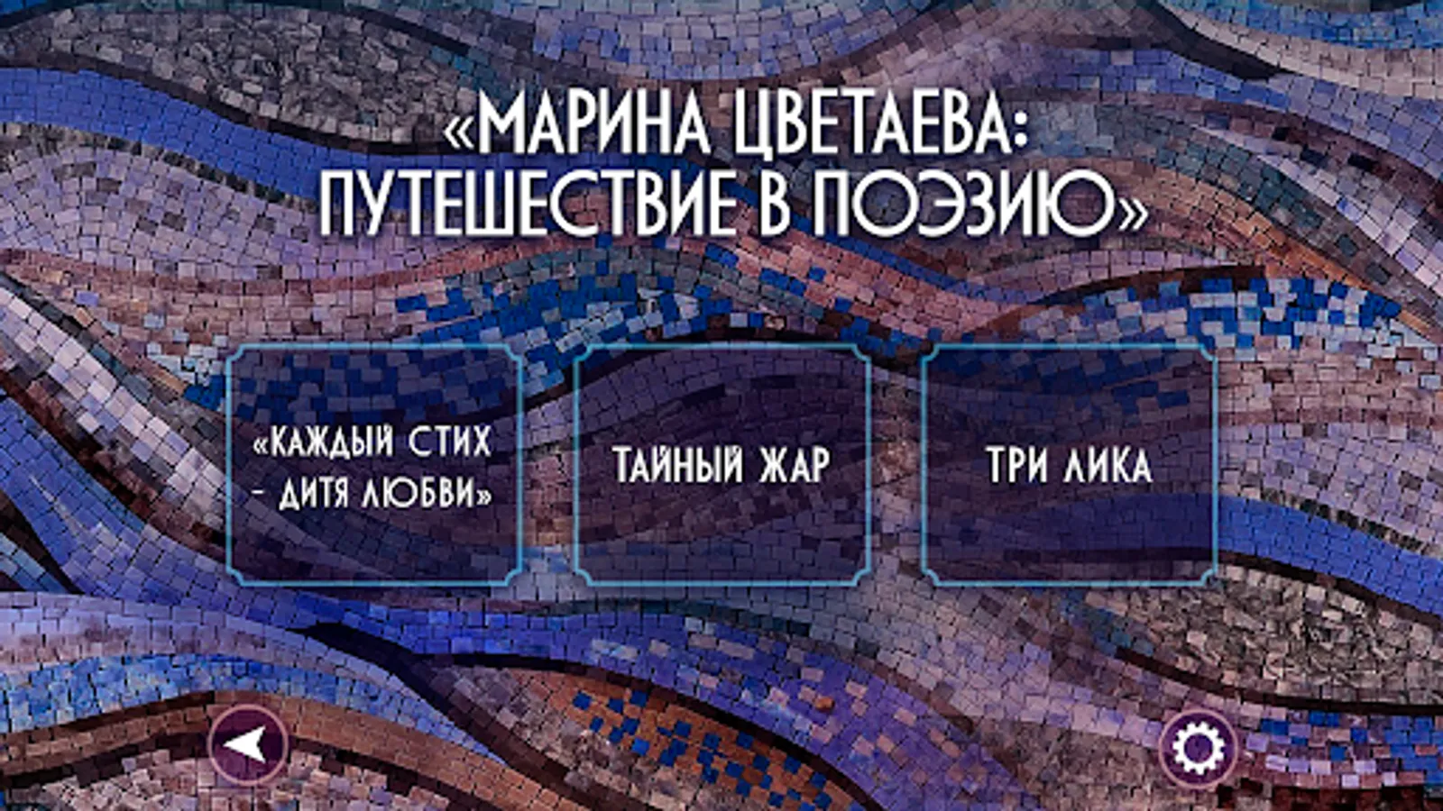 The game "Marina Tsvetaeva: Journey into Poetry" consists of three sections. Each section has 20 steps and three paths. The goal of the game is to make the right 60 steps on the way to the Poet.