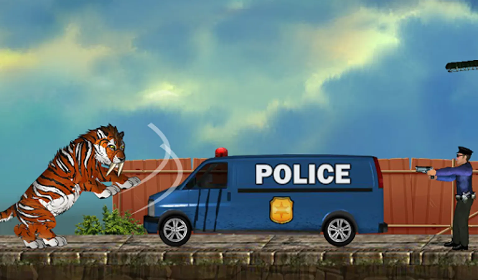 When a prehistoric creature waking up and inadvertently finds himself in town, a real carnage is announced. Control a smilodon (a kind of giant tiger with sharp teeth) and make havoc in the city. Destroy everything in your path, buildings, cars, trucks, planes and annihilate the police and army forces who want to stop you.