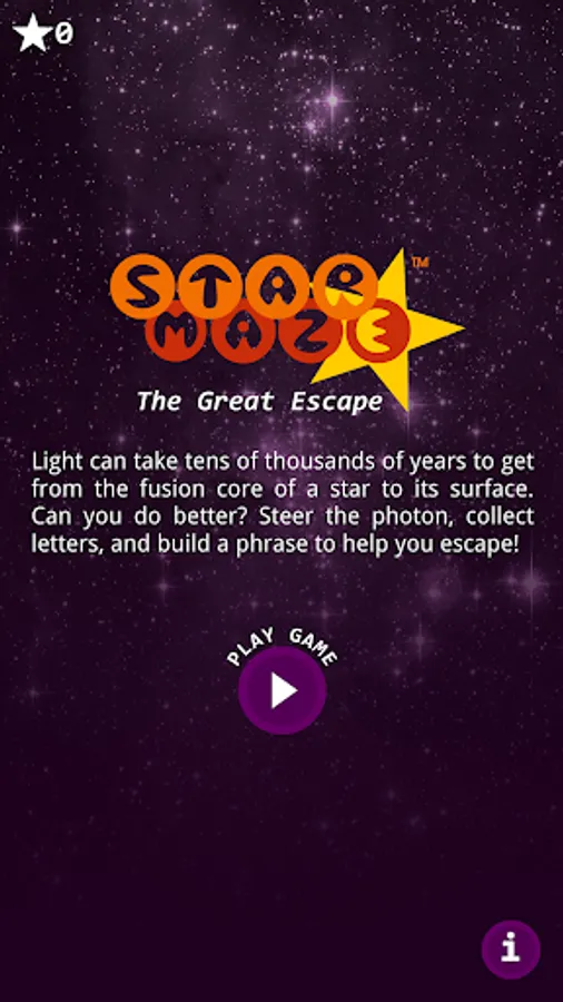 For teachers: Star Maze can be used as an educational game to supplement classroom discussions on the sun, stars, and astronomy. The hint phrases borrow from both the Benchmarks For Science Literacy and NASA's Heliophysics Concept Map. Development was supported through grants by the National Science Foundation.