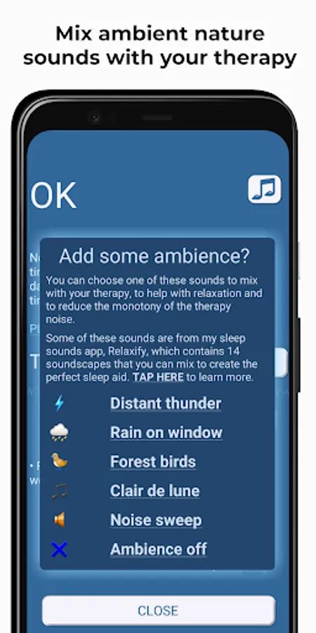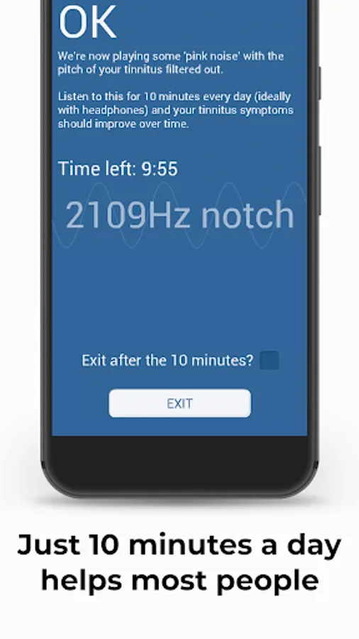 First, we identify your 'tinnitus frequency', then we play what is called 'pink noise' with your tinnitus frequency filtered out. Listening to this every day can improve your tinnitus symptoms by forcing your ears to adjust for the missing frequency.