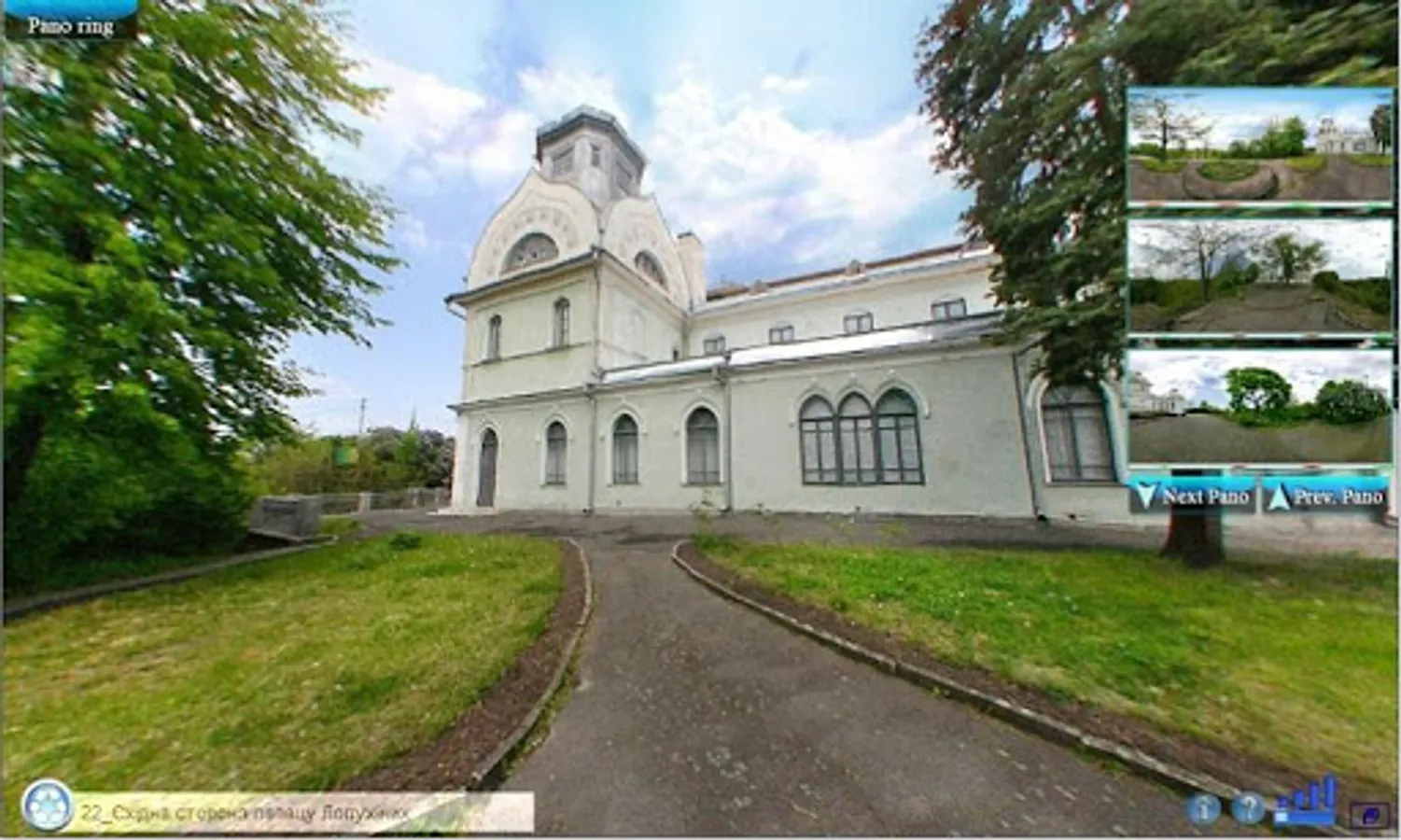 Each virtual tour is presented in the form of spherical, three-dimensional panoramas full of "tourist guide" - professional sound foreground, background music (background music license provided by A. Zakharenko. Music by Origen - www.origenmusic.com), static photos, plan tour virtual transitions, c licensed software company Spherical Panorama Inc. http://spherical-panorama.com. The technology used to create a virtual tour enables the viewer in the scene of the image, rotate it in different directions at 360h360 degrees. Bringing or removing certain moments image viewer can navigate through the virtual tour via interactive effect of presence. Very beautiful music will immerse themselves in the virtual space. In this software and materials certificate of registered intellectual property SB number 10293 from 17.06.2004, the Ministry of Education and Science of Ukraine, State Department of Intellectual Property. Background music for the tour provided under license - author Alexei Zakharenko (Origen) Music by Origen - www.origenmusic.com