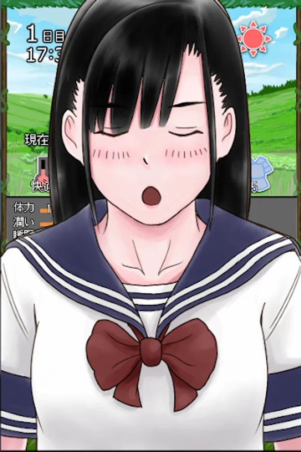 You (the player) is one of black hair long JK that had washed ashore on a deserted island in an accident.