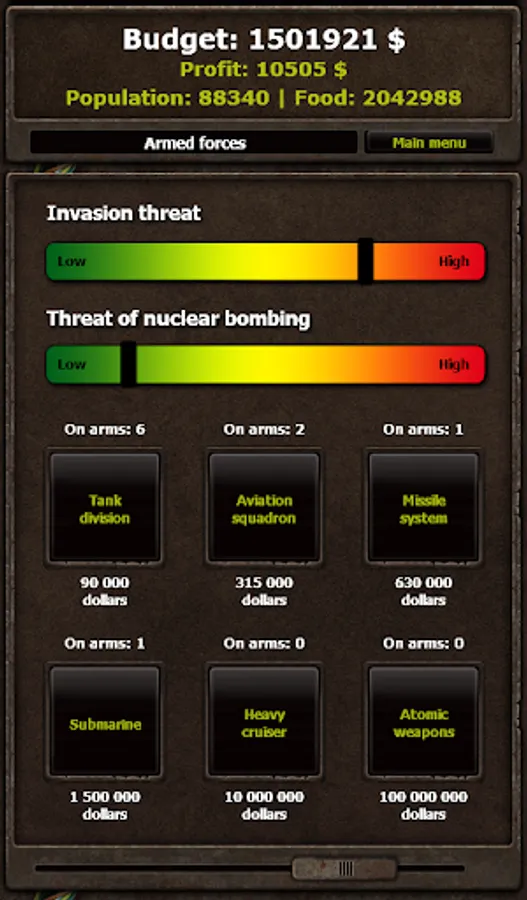 - Develop your military forces, because over 100 countries are vying for your territory/