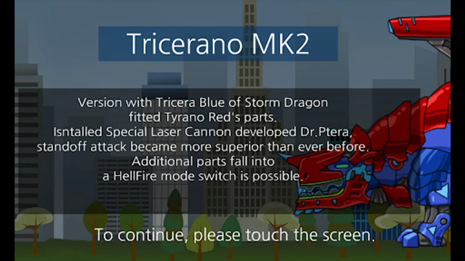 "Tyrannotops is a version equipped with Tricera Blue parts