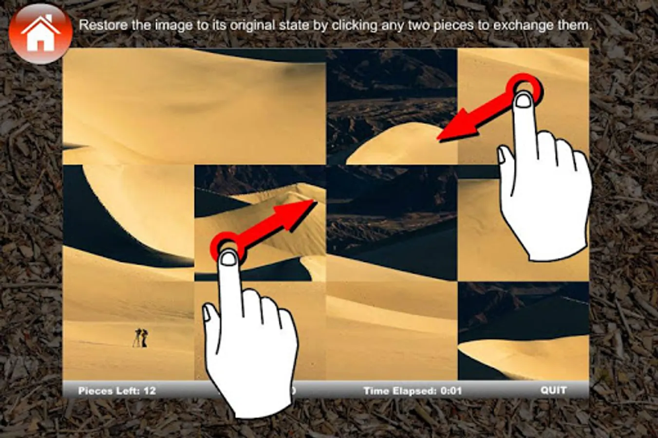 Players must click on these "pieces" to interchange their position and, ultimately, restore the original image.