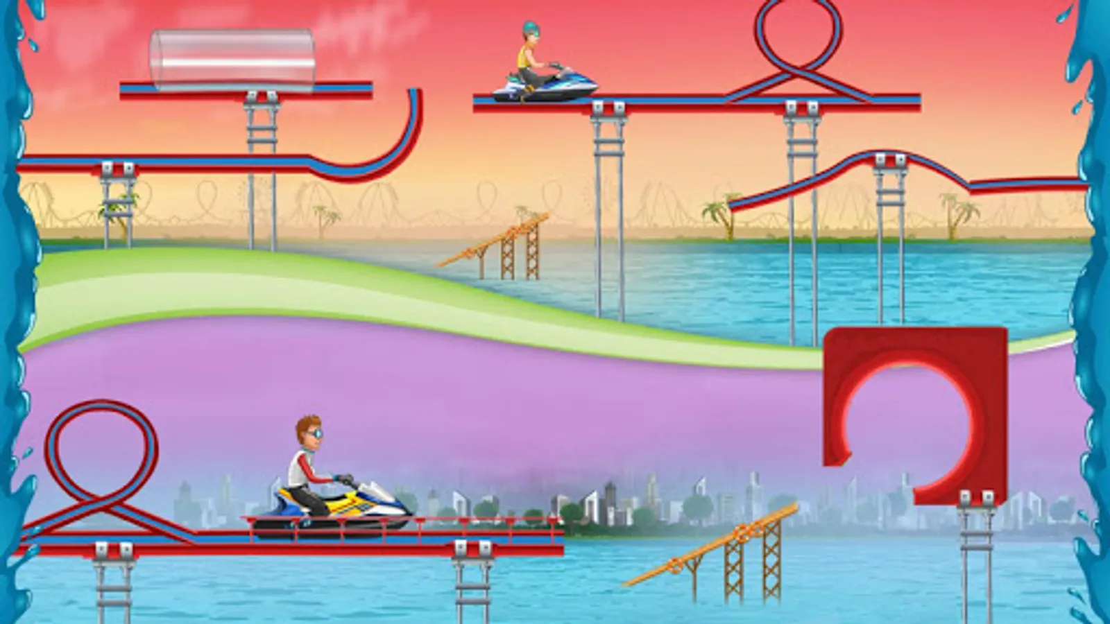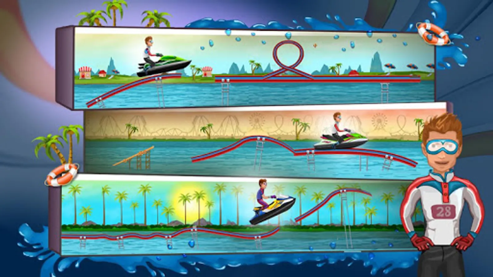 Race and ski through the water. Glide, ski, slide over the waves to win the race. Collect coins and unlock new achievements.