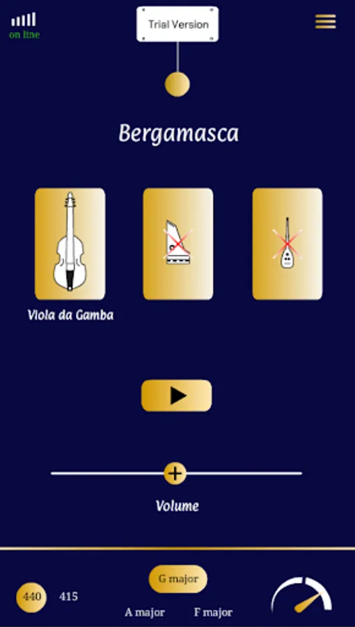 Our loops are Early Music standards: Grounds, Folia, Romanesca, etc. They are interpreted by three different sounds that you can combine: Viola da Gamba, Lute and Harpsichord. Real studio recorded sounds played by professional musicians. With three different speeds, in order to adapt the selected loop to your improvisational skills and in six different keys (three in 440 and three in 415 Hz.) so you can use the one that best adapts to your instrument.