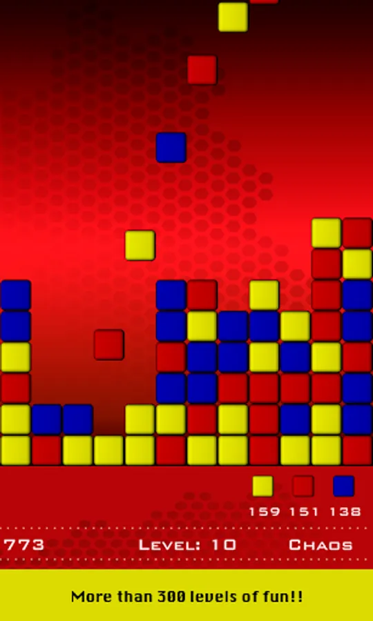 New different colors of blocks appear in advanced levels making harder to make combinations and grouping blocks by color.