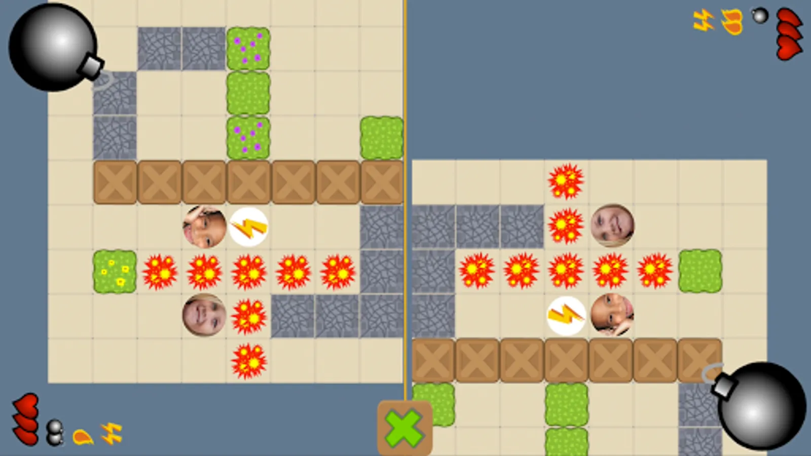 Have you ever played a bomber game? Still remember epic battles on old Amiga with friends? It is now possible on your mobile device with split screen. Play in 2 player mode, together against the computer or player vs player. The old great times come true!