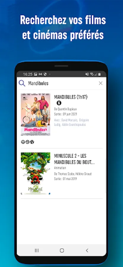 - Simply search for a film or cinema thanks to the integrated search engine.