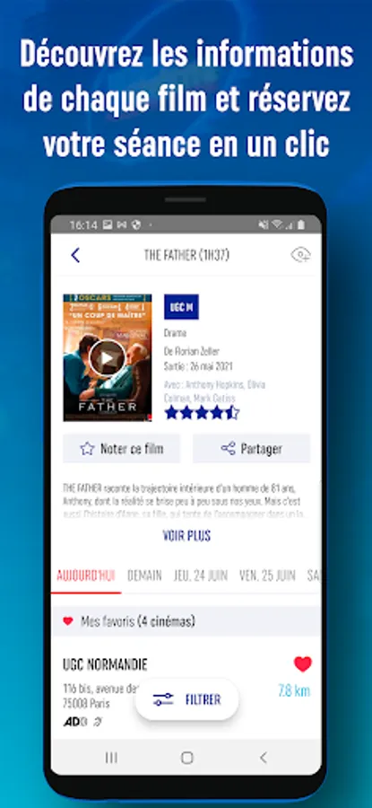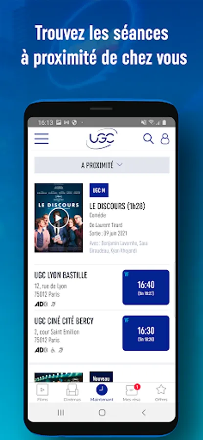 - All the sessions planned in the nearby UGC cinemas thanks to geolocation,