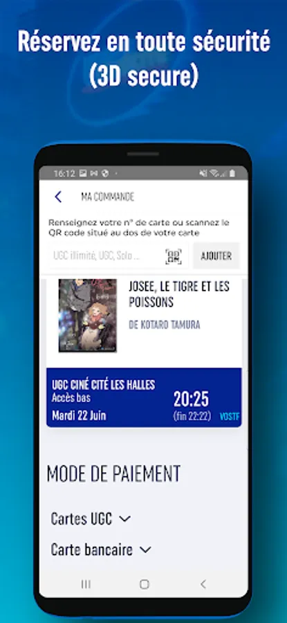 - Reserve your cinema tickets securely (3D Secure) and in a few clicks in the application,