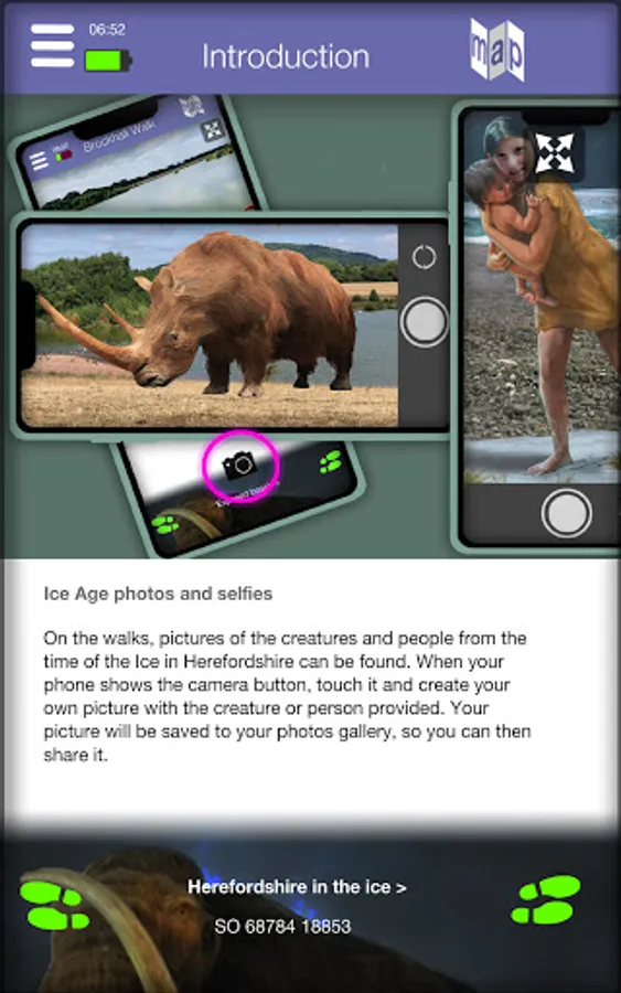 On the walks you will discover locations where you can use the app to take selfies, with a number of now extinct creatures, like woolly mammoths, from the time of the ice.