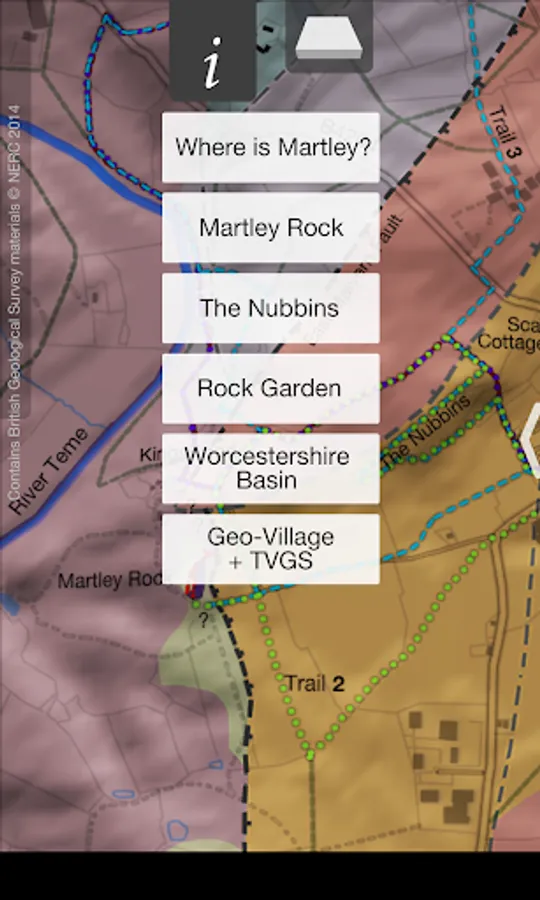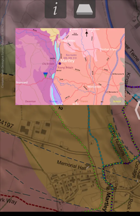 Includes the routes for all Martley GeoTrails plus the Geopark Way, with of course GPS guidance of your current position on the path.