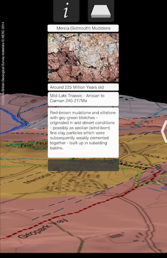 Touching the map provides information about the geology of your location.