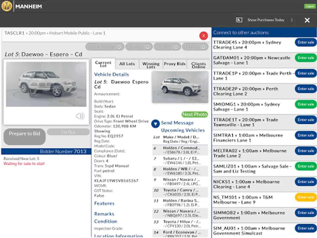 The Manheim Simulcast App will allow registered account holders to log into and participate in Australian auctions all over the country, on their Android device and: