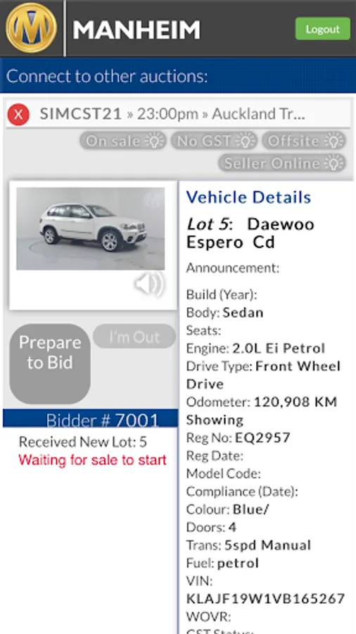 The Manheim Simulcast App will allow registered account holders to log into and participate in New Zealand auctions all over the country, on their Android device and: