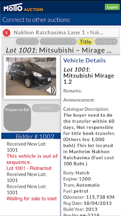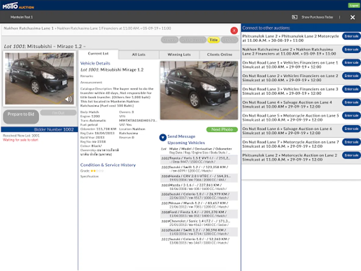 This application will show all information such as list of all vehicles, details, terms and conditions, car pictures both exterior and interior also can send a message directly to the auctioneer. Importantly, you can bid in real-time to every auction (via tablet) * for mobile use, can also access to many auction sites but have to change the page as it can see one site on one page. After the auction, you can check all the list you have bid with the summary of the payment easily, conveniently, quickly, wherever you are.