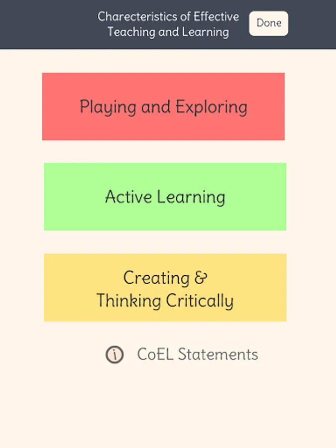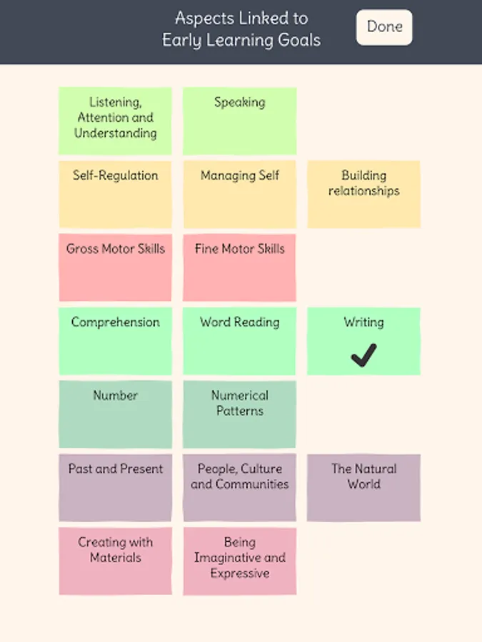 Teachers use your School360 username and password to access all your EYFS classes and students. You can then record observations against, characteristics of teaching and learning, areas of learning goals and aspects linked to early learning goals.