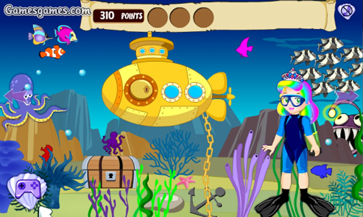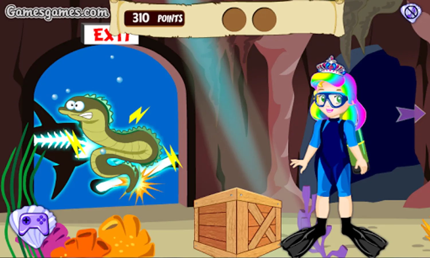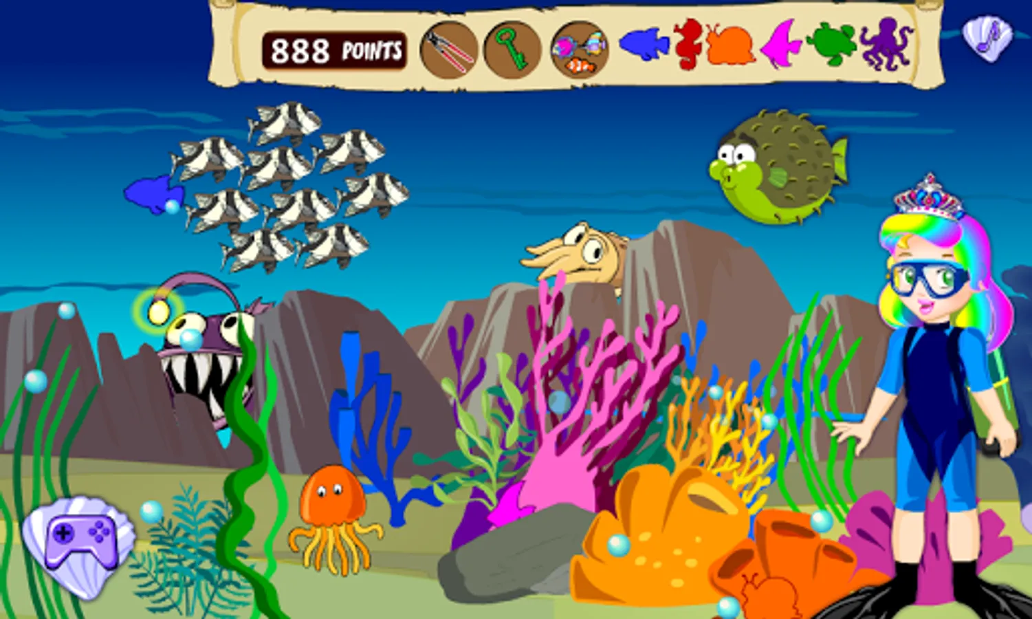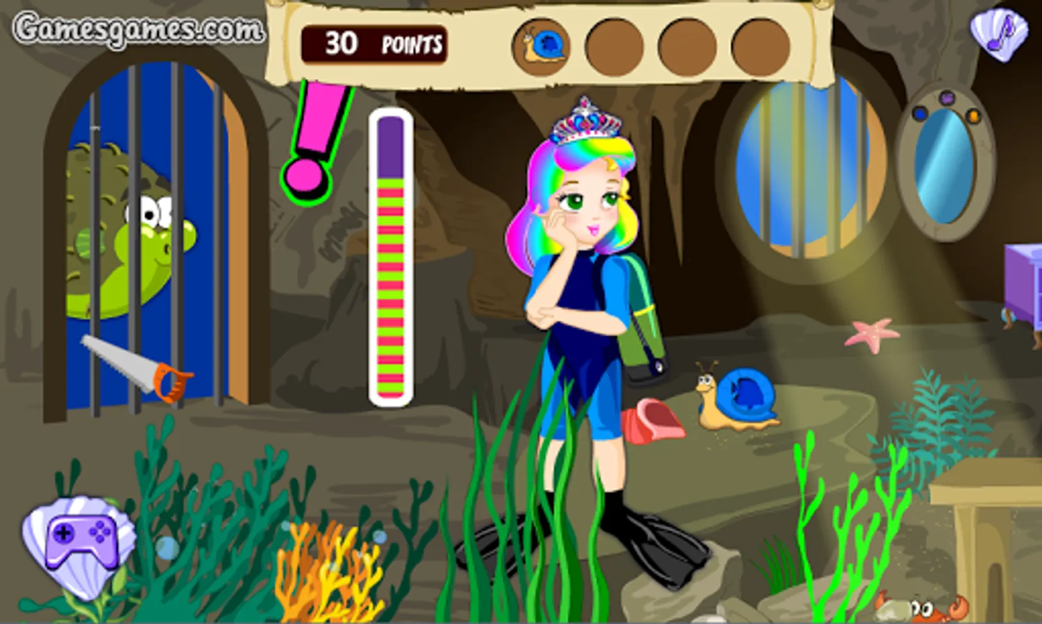 Princess Underwater is a great escape game, with an amazing gameplay especially created for little girls. Enter the magical underwater world where Juliet has to escape incredible creatures like the hammer shark, octopus, balloon fish, whales and complete cute animal games such as find the differences and escape game.