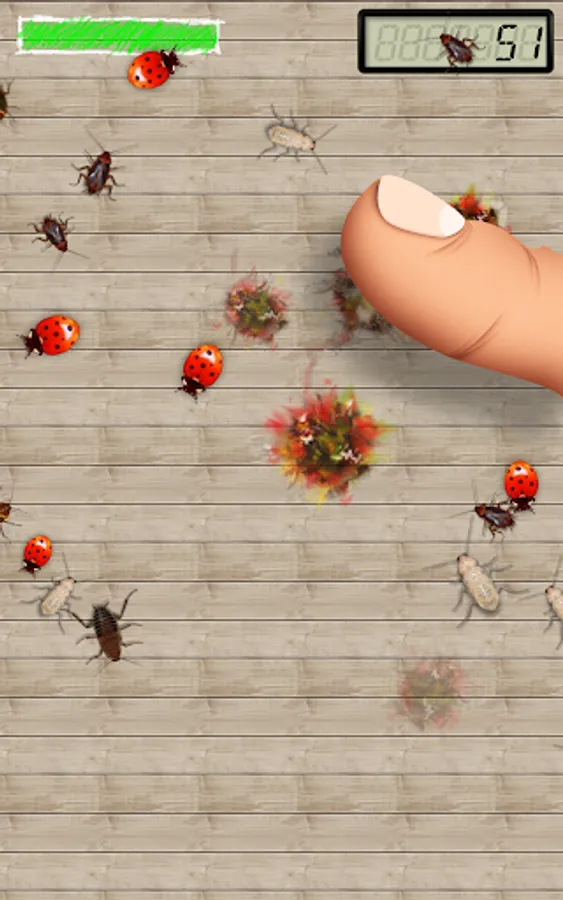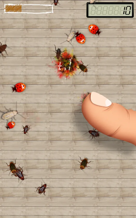 Smash cockroaches with your finger but watch out for lady-bugs! Bugs are running freely round your screen. Kill all of them and get even with those ugly beasts. If you smash a lady-bug though, your game ends and you need to start over.
