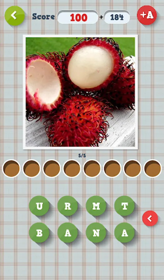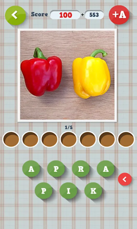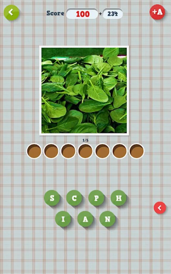 In"Guess what? Fruits & vegetables" app you'll find pictures and letters under them. Your task is to use the letters to form the name of a particular fruit or vegetable under each photo. If the riddle is too difficult, you may use the hint available under A+. Each solved riddle is awarded with points. Collect as many as you can and share your score with friends on Facebook!