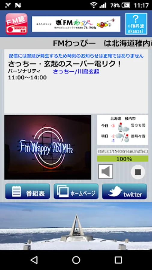 "FM listening (FM Tay)" 24 hours a broadcast of FM Wappiー, it is smartphone compatible radios app that can be heard in real time.