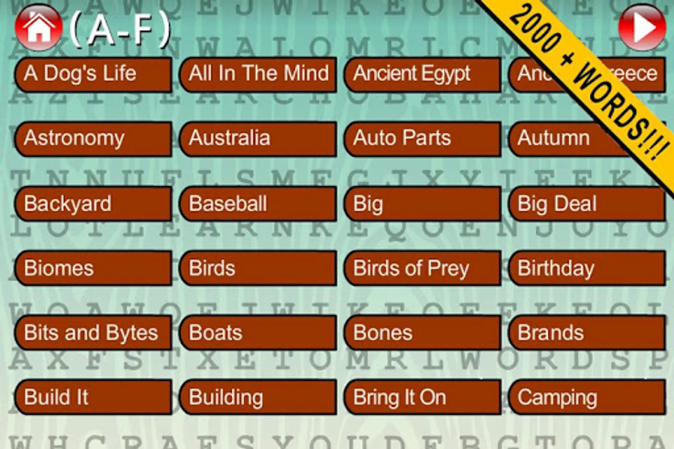 Word Search Master Wordsmith comes with random themes of all 144 categories. This game is jam packed with 2000+ words with unlimited puzzles with no puzzle ever being the same.
