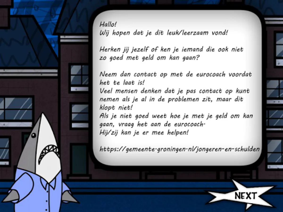 This educational story about Henry the shark that you play yourself. Here you can determine its financial affairs by means of different choices. Through these choices, you can follow different routes and thus arrive at a good or bad end. This way you can find out how you yourself handle your finances and what you should do if this does not go well ... more.