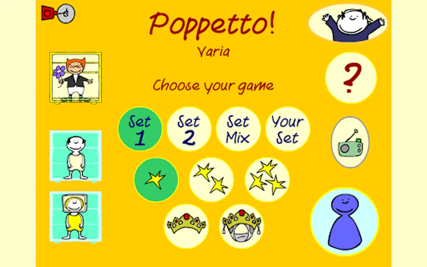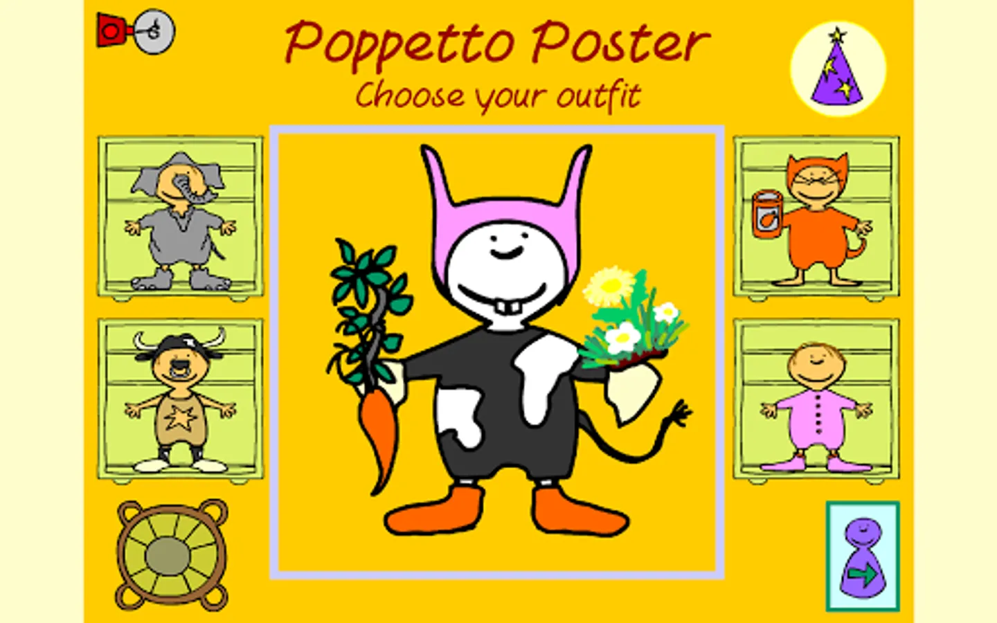 Your Poppetto is not dressed up well. You can fix this by choosing the right item from your opponents closets. Who is first to dress up correct? Create your own Poppetto play set or choose from 8 in game themes. Dress your Poppetto for a poster or colouring page.