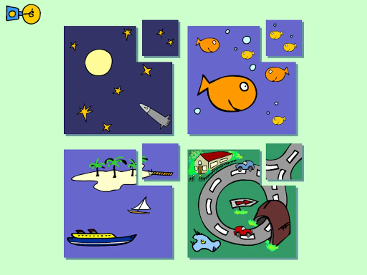 - Puzzles with recognizable objects and shapes.