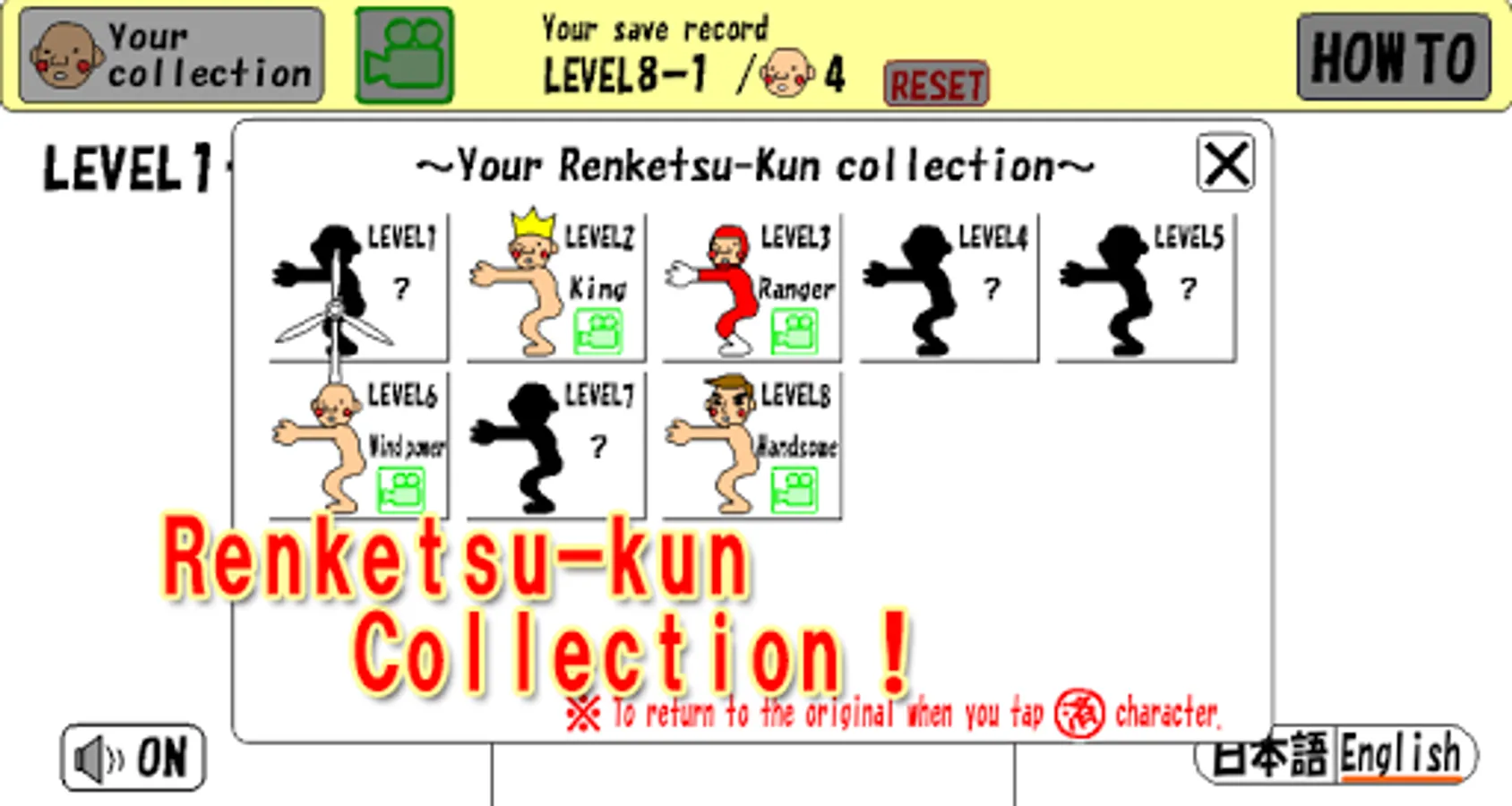 When you get "just!" at every stages of each levels, you can get Renketsu-kun's collections!