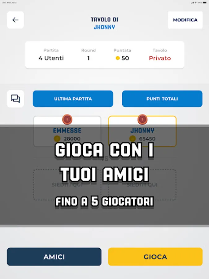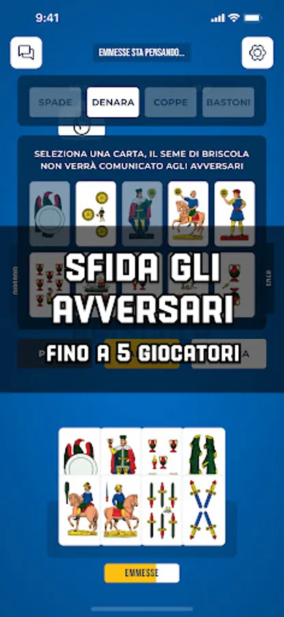 Play on your smartphone or tablet in 2, 3 or 4 players at traditional briscola, or in five at call briscola (or briscola pazza)!
