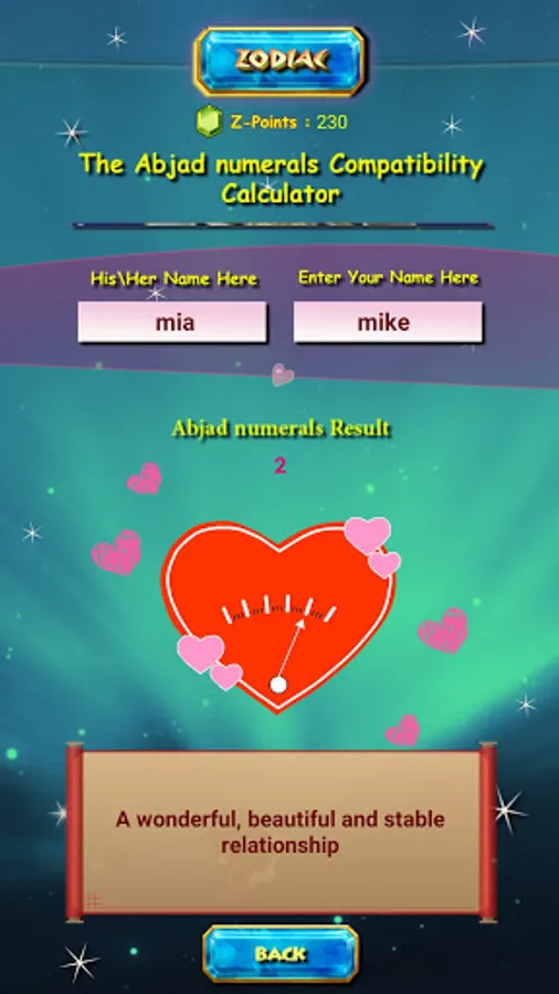 - Abjad Numerals love compatibility : This unique calculator matches names according to the Abjad numerals method, it is one of the best known methods.