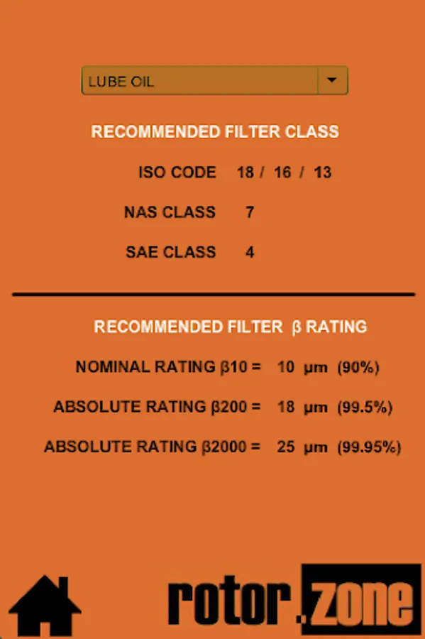 Select filter based on application. Covers nominal and absolute beta ratings and most major cleanliness standards (ISO, NAS & SAE).