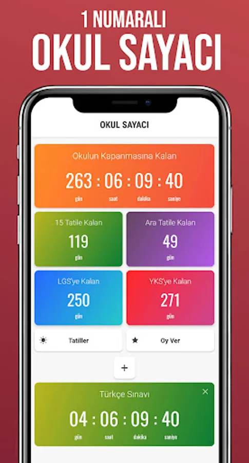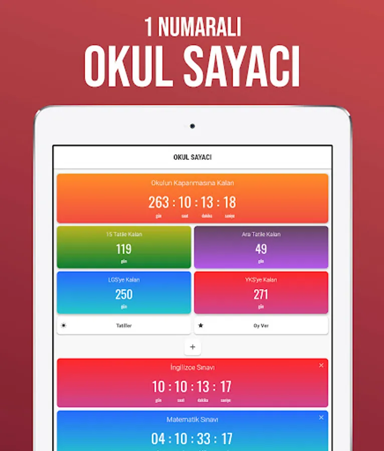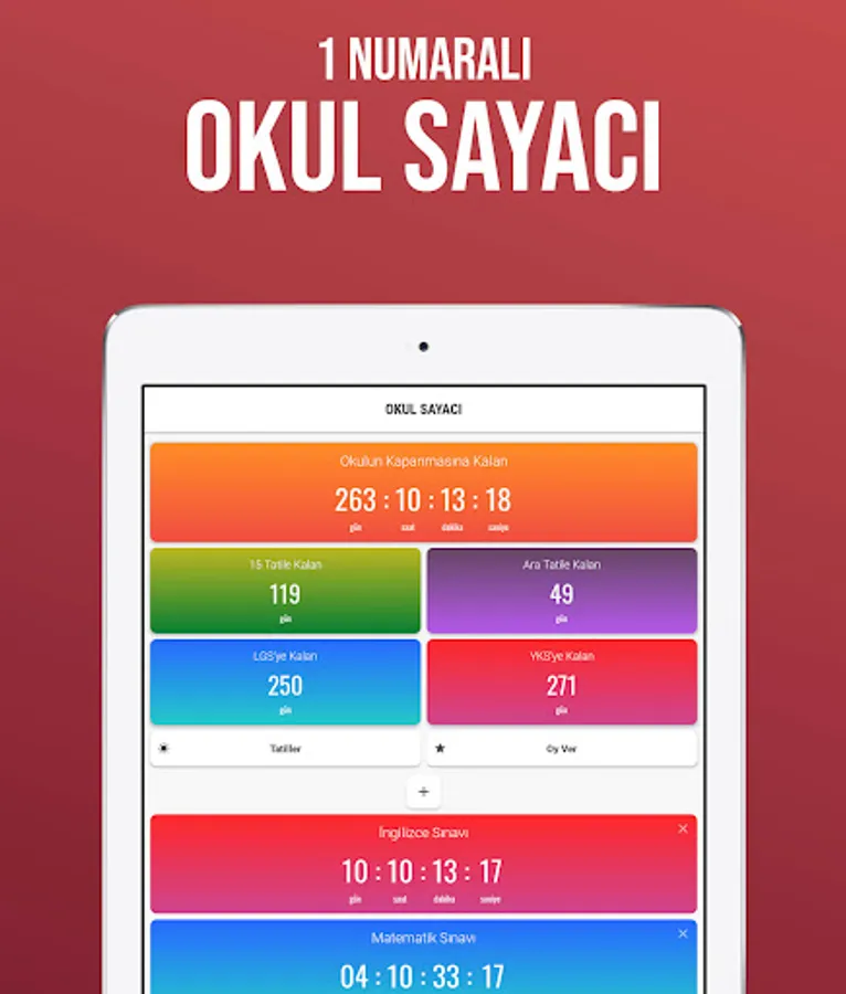 A useful app that shows how long it takes to close or open schools. With this constantly updated application, you can learn the seconds of closing the schools. You can also follow the Yks and Lgs exams through this application. This application does not require internet.
